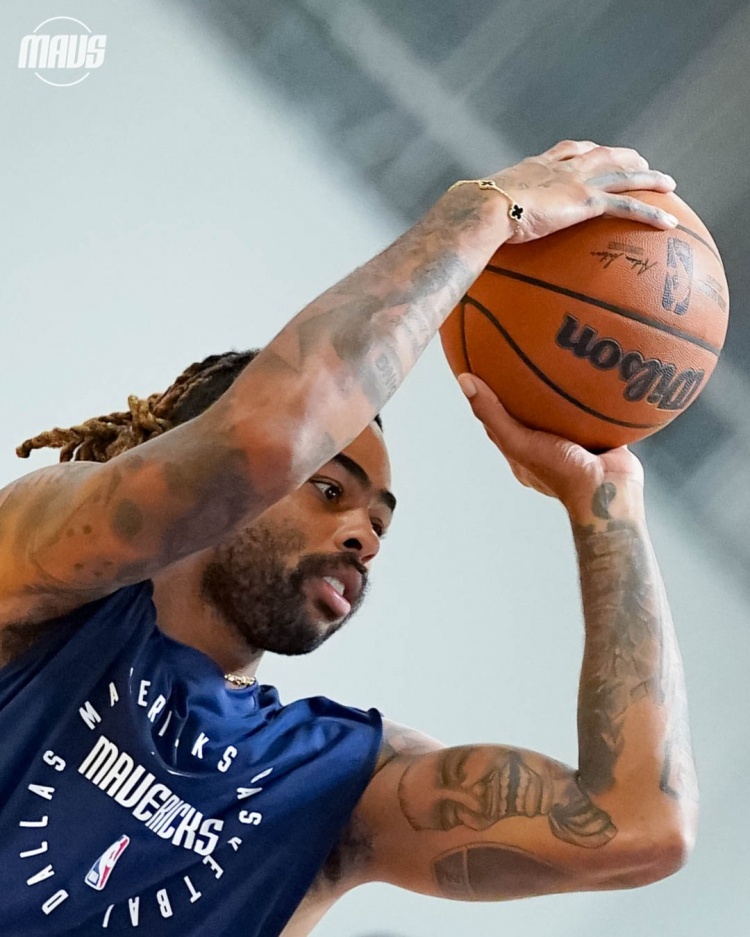 9月11日讯 今天,独行侠官方晒出了球队新援拉塞尔的训练照。
